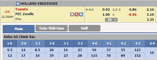 Tổng bàn thắng cả trận: Về lý thuyết đây là trận đấu giữa những cái tên gây thất vọng bậc nhất tại sân chơi bóng đá Hà Lan ở thời điểm hiện tại. Tuy nhiên, nhà cái châu Á vẫn niêm yết tổng bàn thắng ở mức 2 3/4 cho thấy đánh giá rất tích cực về kịch bản tưng bừng. Thực tế, Twente đang khát điểm để trụ hạng nhiều khả năng sẽ phát động thế trận tấn công cởi mở.