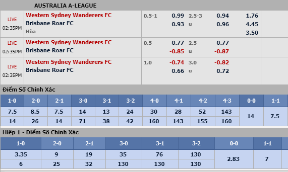 Tổng bàn thắng: Vấn đề của Western Sydney nằm ở hàng thủ. Kể từ đầu giải, tập thể dưới quyền HLV Popovic chưa một lần giữ sạch lưới. Thế nên, dù hàng công đã nỗ lực hết sức, nhưng họ không có được kết quả chung cuộc như ý muốn. Trong khi đó, Brisbane Roar đã 4 lần xé lưới đối phương trong 2 trận vừa qua. Thống kê còn cho thấy, 3/4 trận đối đầu gần nhất trên sân của Western Sydney khép lại với tổng bàn thắng từ 3 trở lên. Chọn Trên 2 3/4 bàn.