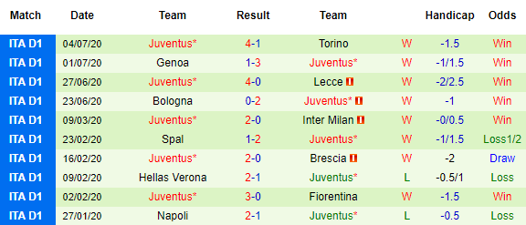 Mặc dù vậy thì ở trước trận đại chiến sắp tới, Juventus mới đang là cái tên tạo được sự tin tưởng lớn hơn khi cả 5 vòng đấu trở lại đây, họ đã giành chiến thắng theo kèo châu Á, trong số đó bao gồm 2 chiến thắng mà họ có được từ 2 chuyến xa nhà gần nhất. Nên nhớ, đây cũng là lần đầu tiên trên sân khách họ vượt qua được thử thách từ nhà cái 2 trận liên tiếp.