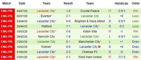 Trên sân nhà, Leicester có 8 lần thắng kèo trong 17 vòng đã qua, đạt tỷ lệ 47,06% còn Arsenal thắng kèo sân khách đạt tỷ lệ 41,18%. Ở 10 vòng mới nhất, nếu như Arsenal thắng tỷ lệ 6, thua kèo 3 thì Leicester chỉ thắng kèo 3 trận và thua kèo 4 lần. Trong 10 lần chạm trán mới nhất, Arsenal chỉ thắng tỷ lệ 3 lần, còn Leicester vượt kèo 4 lần.