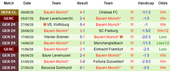 Nếu tính ở 10 trận gần đây, Barca chỉ có 3 lần vượt rào cản handicap, và thua kèo 7 trận còn lại. Trong khi ấy, ở 10 trận chính thức vừa qua thì Bayern thắng kèo 7 trận và chỉ thua tỷ lệ 3 lần. Ở 6 lần chạm trán gần nhất trong khuôn khổ Champions League, Barca có 2 lần thắng tỷ lệ, hòa kèo 1 còn Bayern vượt chỉ số châu Á 3 lần.