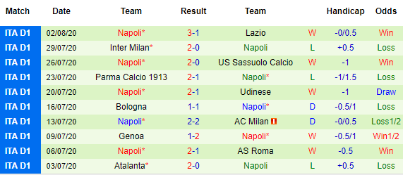 10 trận gần nhất của Napoli