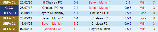 Ở thành tích đối đầu hai đội đang có kết quả tương đồng nếu tính theo tỷ lệ châu Á. Mỗi đội có được 3 trận thắng kèo sau 6 cuộc đối đầu gần nhất. Nếu chỉ tính những trận đấu trên sân nhà của Bayern Munich thì mỗi đội có được 1 trận thắng kèo sau 2 trận gần nhất. Phong độ ở thời điểm hiện tại của Bayern Munich tương đối ổn định với 3 trận thắng kèo sau 4 lần ra sân thi đấu gần nhất, trong khi đó Chelsea có những thống kê trái ngược với chỉ 2 lần thắng kèo sau 7 trận đấu gần nhất. The Blues còn có thành tích thảm hại hơn trên sân khách với 1 trận thắng 1 trận hoà và 9 trận thua kèo trong tổng cộng 11 lần thi đấu trên sân khách gần nhất.