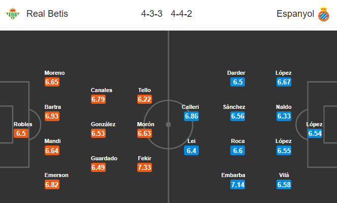 Bảng kèo và thông tin lực lượng trận Betis vs Espanyol (03h00)