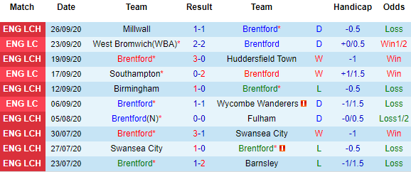 Bảng kèo Brentford