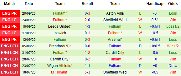 Bảng kèo Fulham