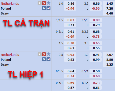 Thành tích trên sàn giao dịch châu Á của Hà Lan ở lần triệu tập trước không thức sự tốt, họ chỉ thắng kèo được duy nhất 1 trận sau 4 trận đấu gần nhất. Còn ĐT Ba Lan lại có thành tích hoàn toàn trái ngược khi liên tiếp thắng kèo châu Á 4 trận đấu gần nhất. Nếu chỉ tính những trận đấu trên sân khách thì Ba Lan còn ấn tượng hơn với 7 lần thắng kèo sau 8 trận làm khách gần nhất.