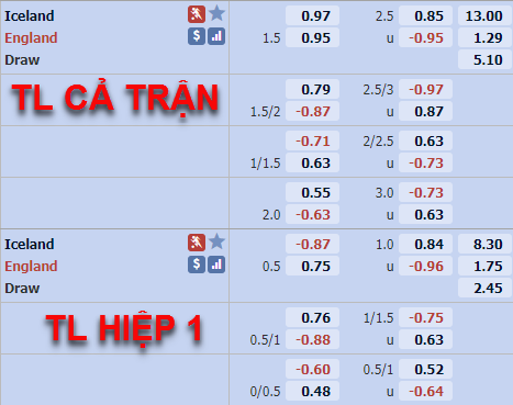 Với đẳng cấp vượt trội ĐT Anh đang được nhà cái đánh giá ở vị trí của trên với tỷ lệ chấp 1 1/2 cho trận đầu này. Ở trận cuộc đối đầu gần nhất của hai đội diễn ra trên sân trung lập, ĐT Anh đã có tỷ lệ chấp 1 hoà nhưng họ đã gây thất vọng khi bất ngờ thất bại trước Iceland với tỷ số 1-2. Trận đấu này có lẽ sẽ là một cơ hội tốt cho ĐT Anh có thể cải thiện thành tích với Iceland.