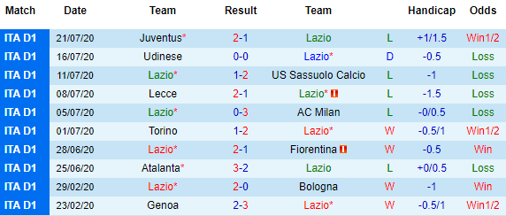 10 vòng gần nhất của Lazio