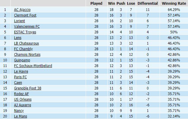Bảng thống kê thành tích kèo giài VĐQG Pháp mùa giải trước