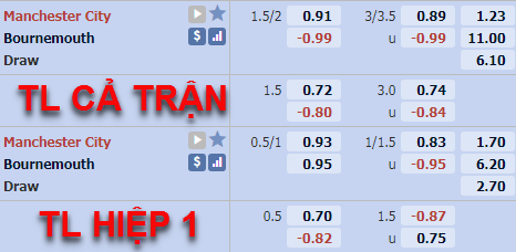 Thời điểm hiện tại Man City đang có phong độ cực kỳ ấn tượng trên sàn giao dịch châu Á khi thi đấu trên sân nhà, họ chỉ thua kèo đúng 1 lần sau 8 trận đấu trên sân nhà gần nhất. Ở phía bên kia Bournemouth cũng có thành tích không tồi khi thắng kèo 4 trong 5 lần gần nhất thi đấu trên sân khách.
