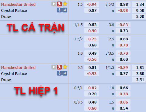Ở thời điểm hiện tại Manchester Utd đang có tỷ lệ chấp 1 1/2. Đây cũng là tỷ lệ chấp thường thấy của đội chủ nhà trong quá khứ đối đầu, ở trận đấu tương tự của mùa giải trước Man Utd cũng có tỷ lệ chấp 1 1/2 nhưng họ đã bất ngờ thất bại với tỷ số 1-2. Trận đấu này sẽ là một cơ hội tốt cho Quỷ đỏ có thể trả món nợ mùa giải trước.