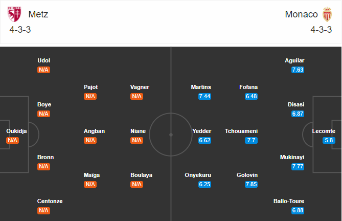 Bảng kèo và thông tin lực lượng trận Metz vs Monaco (20h00)