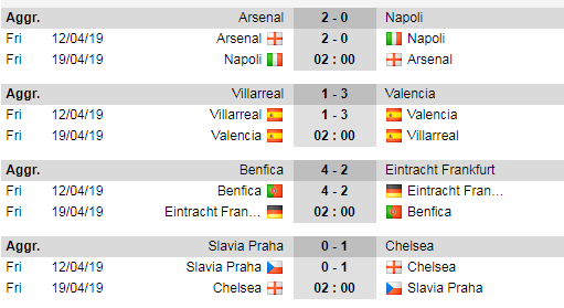 Cập nhật kết quả và lịch thi đấu tứ kết Europa League