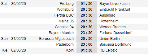 Cập nhật lịch thi đấu và tỷ lệ châu Á vòng 29 giải VĐQG Đức - Bundesliga