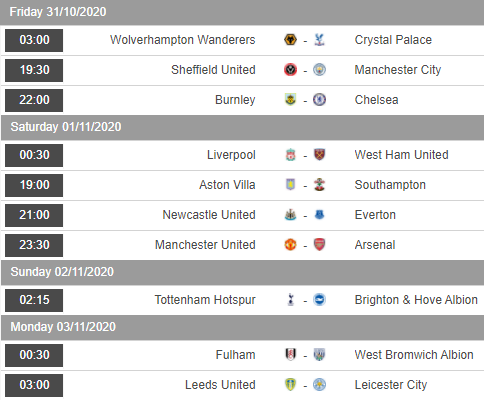 Cùng AEGOAL điểm qua lịch thi đấu, cập nhật tỷ lệ châu Á và những trận đấu đáng chú ý của vòng 7 ngoại hạng Anh 2020-2021