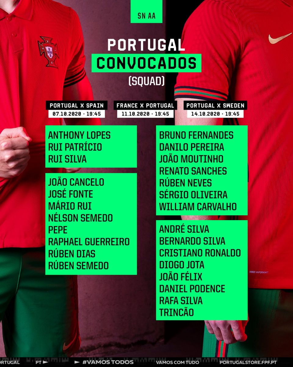 * Danh sách tập trung chính thức tháng 10/2020 của ĐTQG Bồ Đào Nha:
