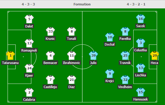 AEGoal.net cập nhật chính xác ĐỘI HÌNH RA SÂN trận AC Milan vs Sparta Praha diễn ra lúc 00h55 ngày 30/10 trong khuôn khổ giải UEFA Europa League.