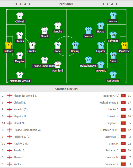 AEGoal.net cập nhật chính xác ĐỘI HÌNH RA SÂN trận Anh vs Montenegro diễn ra lúc 02h45 ngày 15/11 trong khuôn khổ Bảng A - Vòng loại EURO 2020.