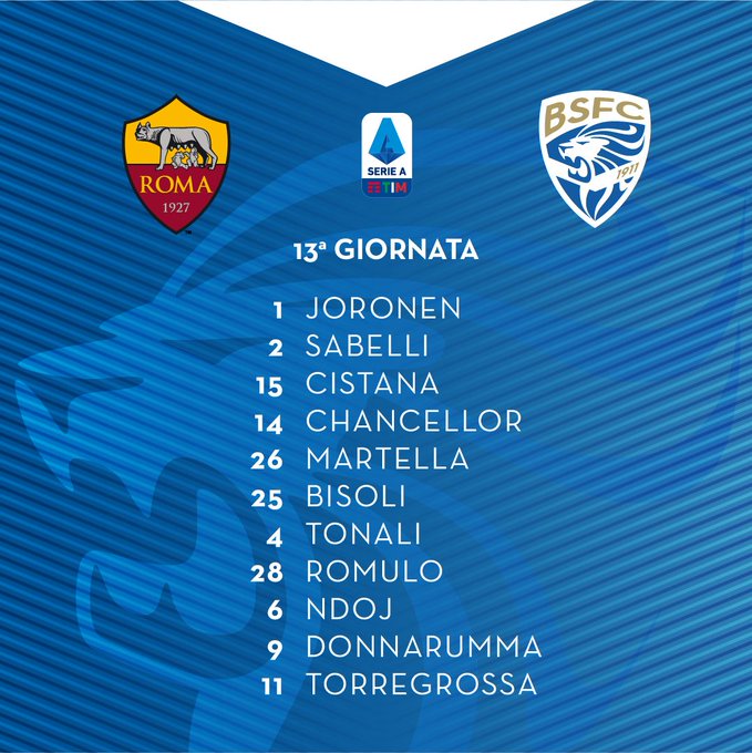Brescia: Joronen; Sabelli, Chancellor, Cistana, Martella; Bisoli, Tonali, Ndoj, Romulo; Donnarumma, Torregrossa