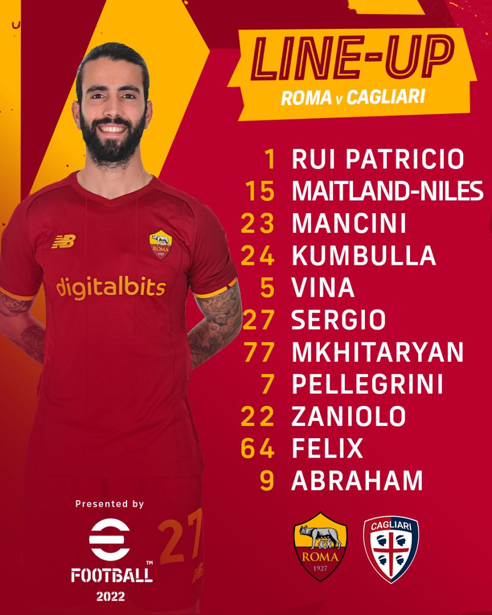 AS Roma: Patricio; Karsdorp, Mancini, Kumbulla, Vina; Oliveira, Veretout; Zaniolo, Pellegrini, Mkhitaryan; Abraham