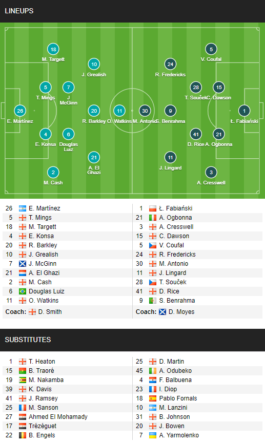 AEGoal cập nhật chính xác ĐỘI HÌNH RA SÂN trận Aston Villa vs West Ham diễn ra lúc 03h15 ngày 04/02 trong khuôn khổ giải Ngoại hạng Anh.