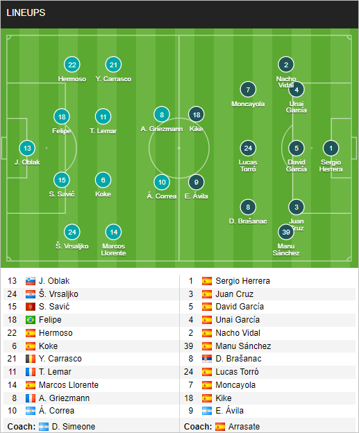 AEGoal cập nhật chính xác ĐỘI HÌNH RA SÂN trận Atletico Madrid vs Osasuna diễn ra lúc 00h30 ngày 21/11 trong khuôn khổ giải VĐQG Tây Ban Nha