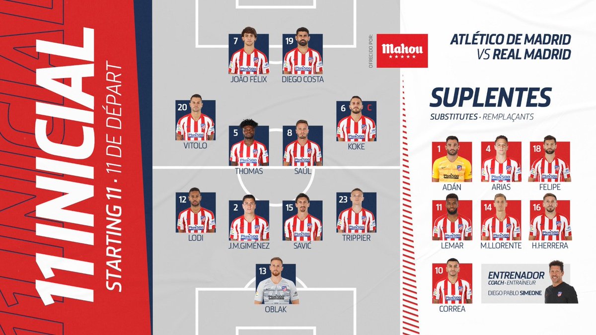 AEGoal.net cập nhật chính xác ĐỘI HÌNH RA SÂN trận Atletico Madrid vs Real Madrid diễn ra lúc 02h00 ngày 29/9 trong khuôn khổ Vòng 7 giải VĐQG Tây Ban Nha - La Liga