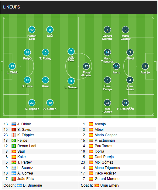 AEGoal.net cập nhật chính xác ĐỘI HÌNH RA SÂN trận Atletico Madrid vs Villarreal diễn ra lúc 21h00 ngày 03/10 trong khuôn khổ giải VĐQG Tây Ban Nha.