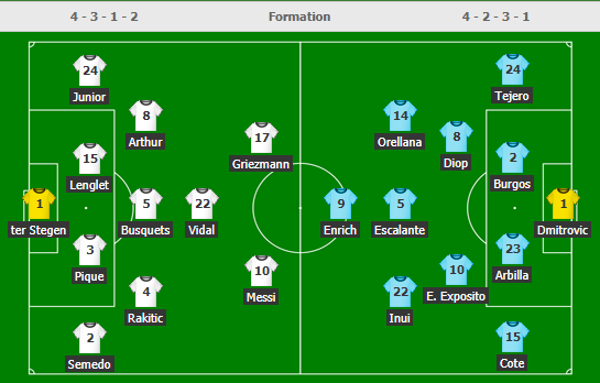 * Barcelona: Dembele, Luis Suarez và Jordi Alba vắng mặt vì chấn thương.