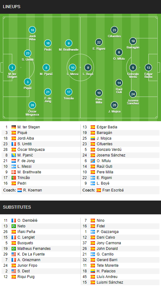 - Barcelona: Ansu Fati, Coutinho, Sergi Roberto vẫn chấn thương còn Araujo bỏ ngỏ khả năng ra sân.