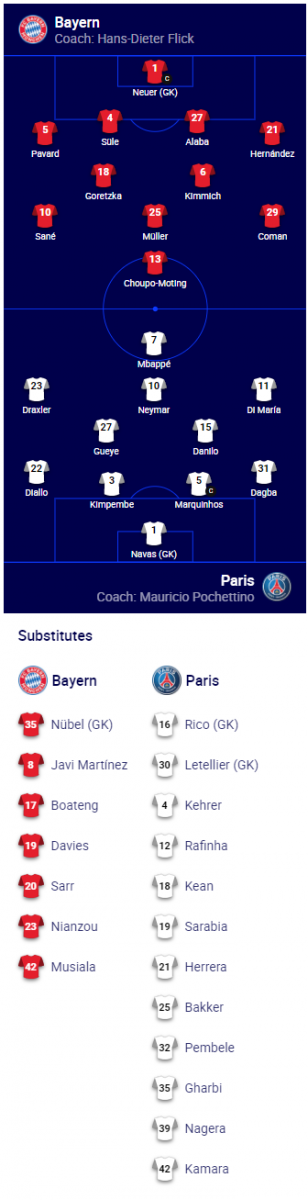 AEGoal cập nhật chính xác ĐỘI HÌNH RA SÂN trận Bayern Munich vs PSG diễn ra lúc 02h00 ngày 08/04 trong khuôn khổ Cúp C1 Châu Âu.