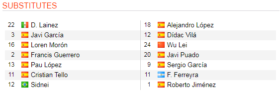 Espanyol (4-3-1-2): Lopez - Lopez, Hermoso, Naldo, Pedrosa - Sanchhez, ROca, Darder - Melendo - Lei, Iglesias