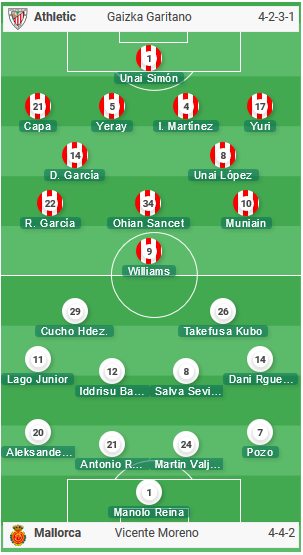 Bilbao: Simón, Capa, Yeray, Íñigo Martínez, Yuri, Unai López, Dani García, Williams, Muniain, Sancet, Raúl García.
