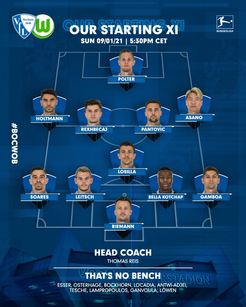 AEGoal cập nhật chính xác ĐỘI HÌNH RA SÂN trận Bochum vs Wolfsburg diễn ra lúc 23h30 ngày 09/01 trong khuôn khổ giải VĐQG Đức.