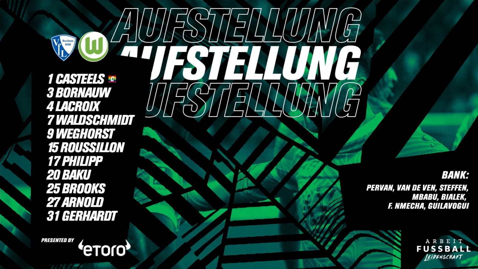 - Wolfsburg: Otavio, William, Lukas Nmecha chấn thương; Waldschmidt, Schlager, Lukébakio, Vranckx, Bialek, Mbabu, Maximilian Philipp, Ginczek (nghi ngờ).