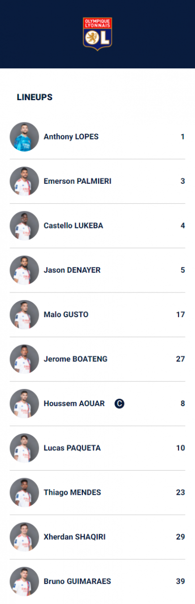 - Lyon: Leo Dubois, Jeff Reine-Adelaide và Sinaly Diomande vắng mặt vì chấn thương.