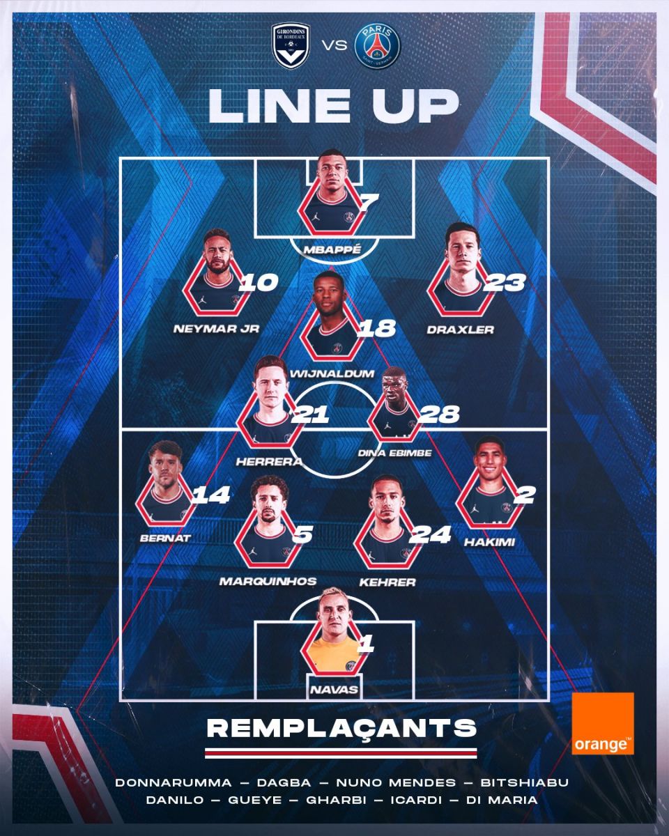 AEGoal cập nhật chính xác ĐỘI HÌNH RA SÂN trận Bordeaux vs PSG diễn ra lúc 03h00 ngày 7/11 trong khuôn khổ giải VĐQG Pháp