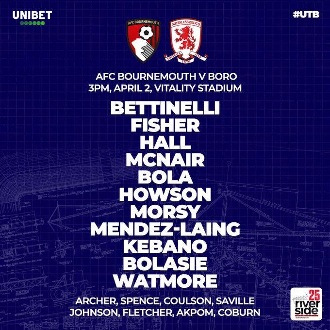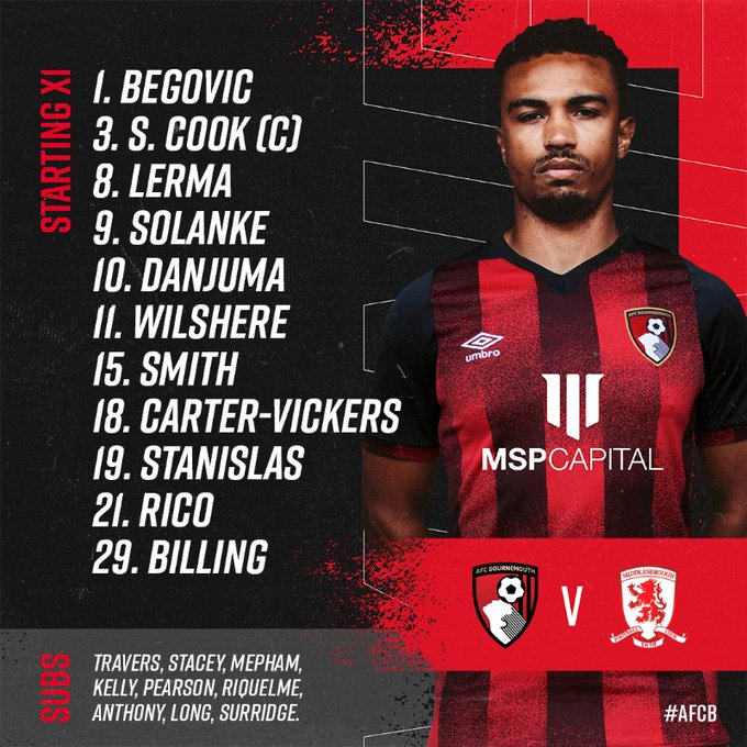 AEGoal cập nhật chính xác ĐỘI HÌNH RA SÂN trận Bournemouth vs Middlesbrough diễn ra lúc 21h00 ngày 02/04 trong khuôn khổ giải Hạng nhất Anh.
