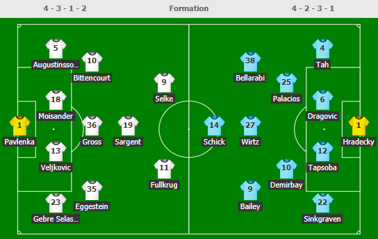 - Leverkusen: Lars Bender, Timothy Fosu-Mensah và Lucas Alario vắng mặt vì chấn thương; trong khi Paulinho, Santiago Arias, Julian Baumgartlinger và Charles Aranguiz vẫn chưa chắc chắn ra sân.