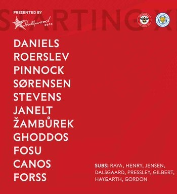 - Brentford: Rasmussen, Baptiste, Jansson chấn thương còn Toney và Dasilva bị treo giò.