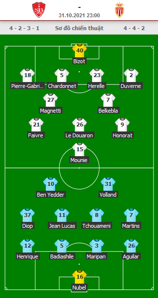 AEGoal cập nhật chính xác ĐỘI HÌNH RA SÂN trận Brest vs Monaco diễn ra lúc 23h00 ngày 31/10 trong khuôn khổ giải VĐQG Pháp.
