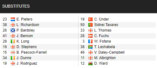 Leicester: Barnes, Evans, Maddison, Justin, Morgan, Fofana, Praet, Perez (chấn thương)
