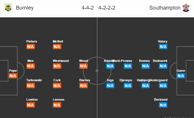 AEGoal.net cập nhật chính xác ĐỘI HÌNH RA SÂN trận Burnley vs Southampton diễn ra lúc 21h00 ngày 10/8 trong khuôn khổ vòng 1 giải Ngoại hạng Anh
