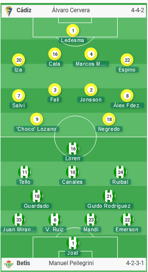 AEGoal cập nhật chính xác ĐỘI HÌNH RA SÂN trận Cadiz vs Betis diễn ra lúc 22h15 ngày 28/02 trong khuôn khổ giải VĐQG Tây Ban Nha.