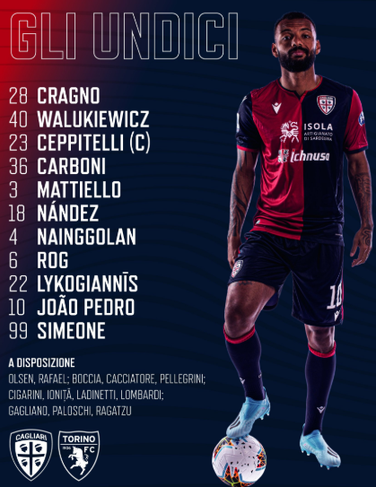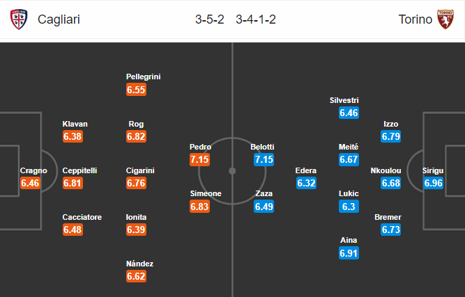ĐỘI HÌNH RA SÂN trận Cagliari vs Torino, 00h30 ngày 28/06: VĐQG Italia
