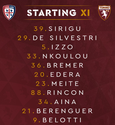 AEGoal.net cập nhật chính xác ĐỘI HÌNH RA SÂN trận Cagliari vs Torino diễn ra lúc 00h30 ngày 28/06 trong khuôn khổ giải VĐQG Italia.