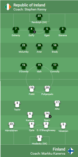 AEGoal.net cập nhật chính xác ĐỘI HÌNH RA SÂN trận CH Ireland vs Phần Lan diễn ra lúc 23h00 ngày 6/9 trong khuôn khổ UEFA Nations League.