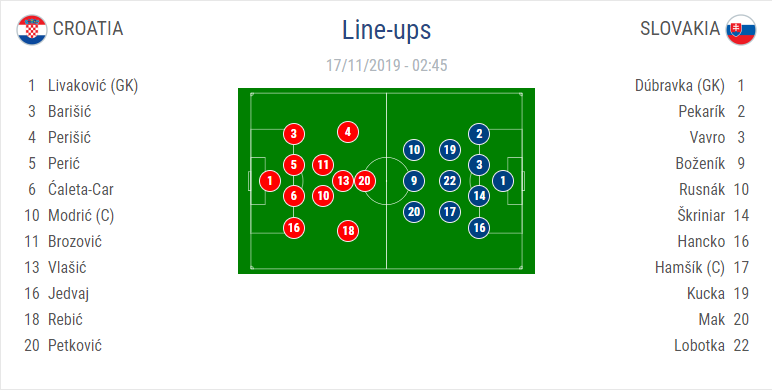 - Trận đấu: Croatia vs Slovakia (Bảng E - Vòng loại EURO 2020)