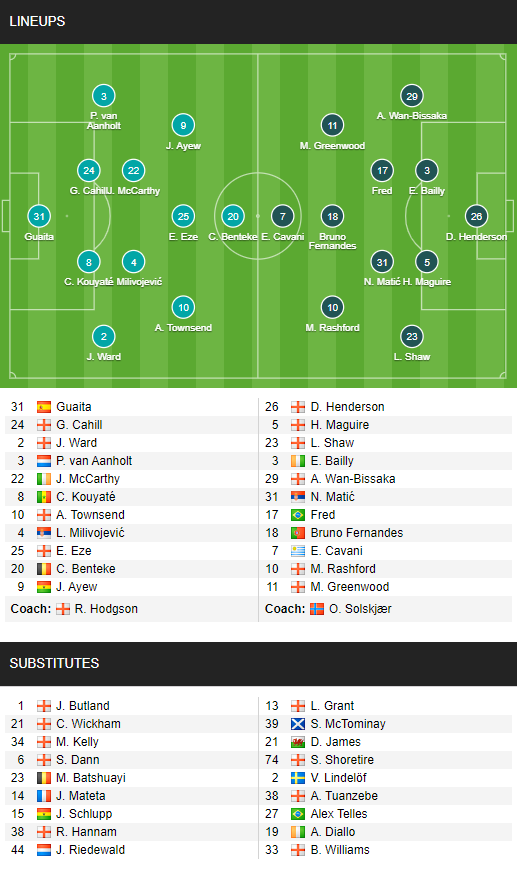 AEGoal cập nhật chính xác ĐỘI HÌNH RA SÂN trận Crystal Palace vs Man Utd diễn ra lúc 03h15 ngày 04/3 trong khuôn khổ giải Ngoại hạng Anh.